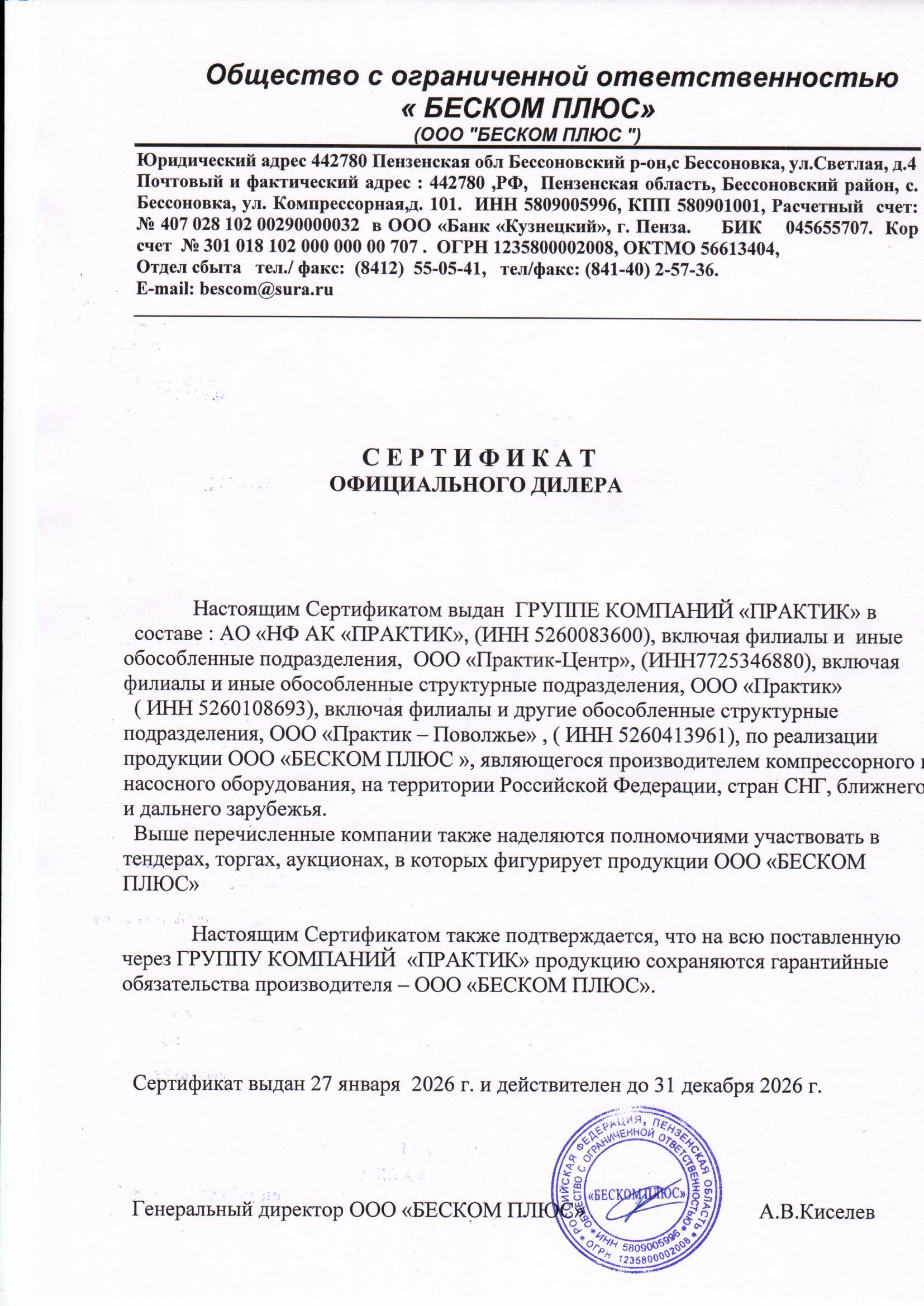 Сертификат официального дилера АО «Бавленский электромеханический завод»